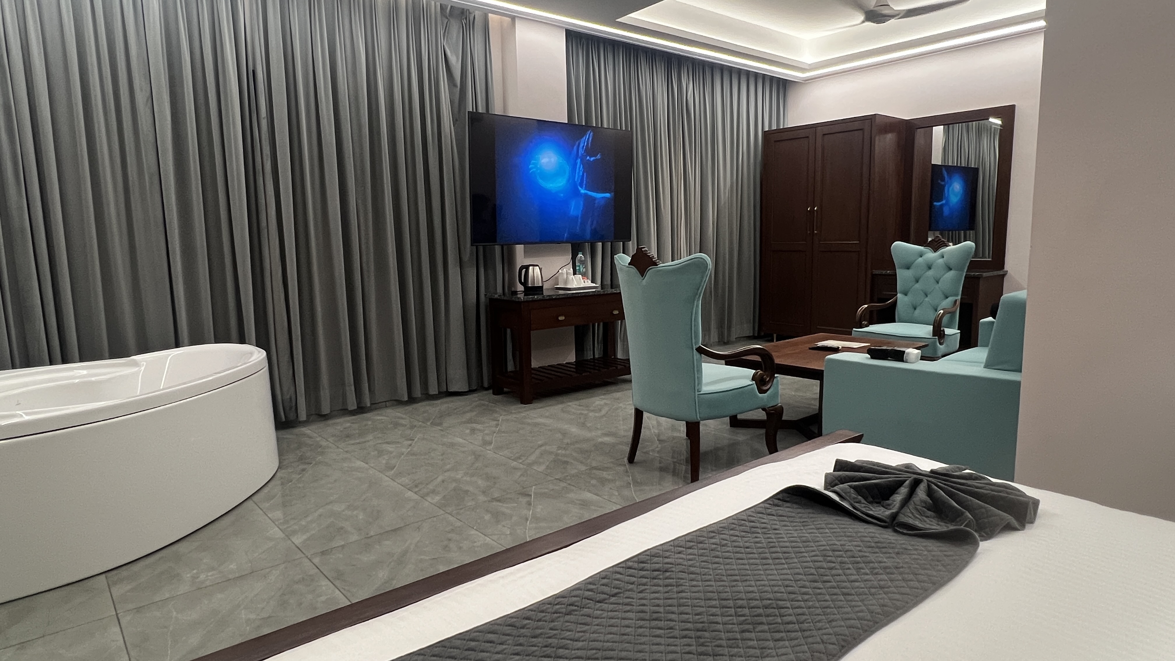 Indulge in ultimate relaxation with an in-room Jacuzzi, stay entertained on the stunning 88-inch Ultra HD LED TV, and enjoy the perfect ambiance where every detail has been designed to reflect luxury living at its finest. The Presidential Suite is more than a stay—it’s an unforgettable experience.